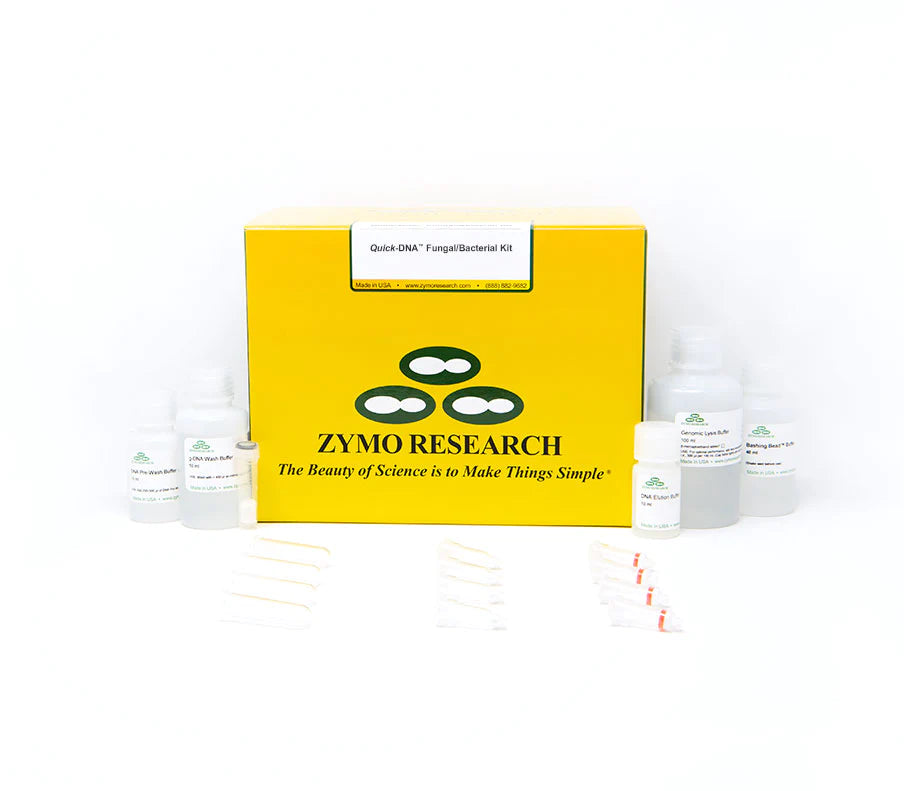 The Quick-DNA Fungal/Bacterial Miniprep Kit is designed for the simple and rapid isolation of DNA from tough-to-lyse fungi, including A. fumigatus, C. albicans, N. crassa, S. cerevisiae, S. pombe, as well as Gram (+/-) bacteria, algae, and protozoa. The procedure is easy and can be completed in minutes: fungal and/or bacterial samples are rapidly and efficiently lysed with our state of the art, ultra-high density BashingBeads. Zymo-Spin column technology is then used to isolate the DNA that is ideal for downstream molecular-based applications including PCR, array, etc.