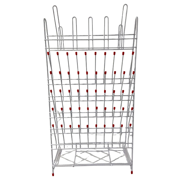 Fabricada en metal revestido en PVC, resistente a agentes químicos y a la corrosión. Cuenta con 55 posiciones fijas para el secado de material de vidrio o plástico de laboratorio. Su diseño permite un orden seguro, higiénico y eficiente, optimizando el espacio de trabajo.
