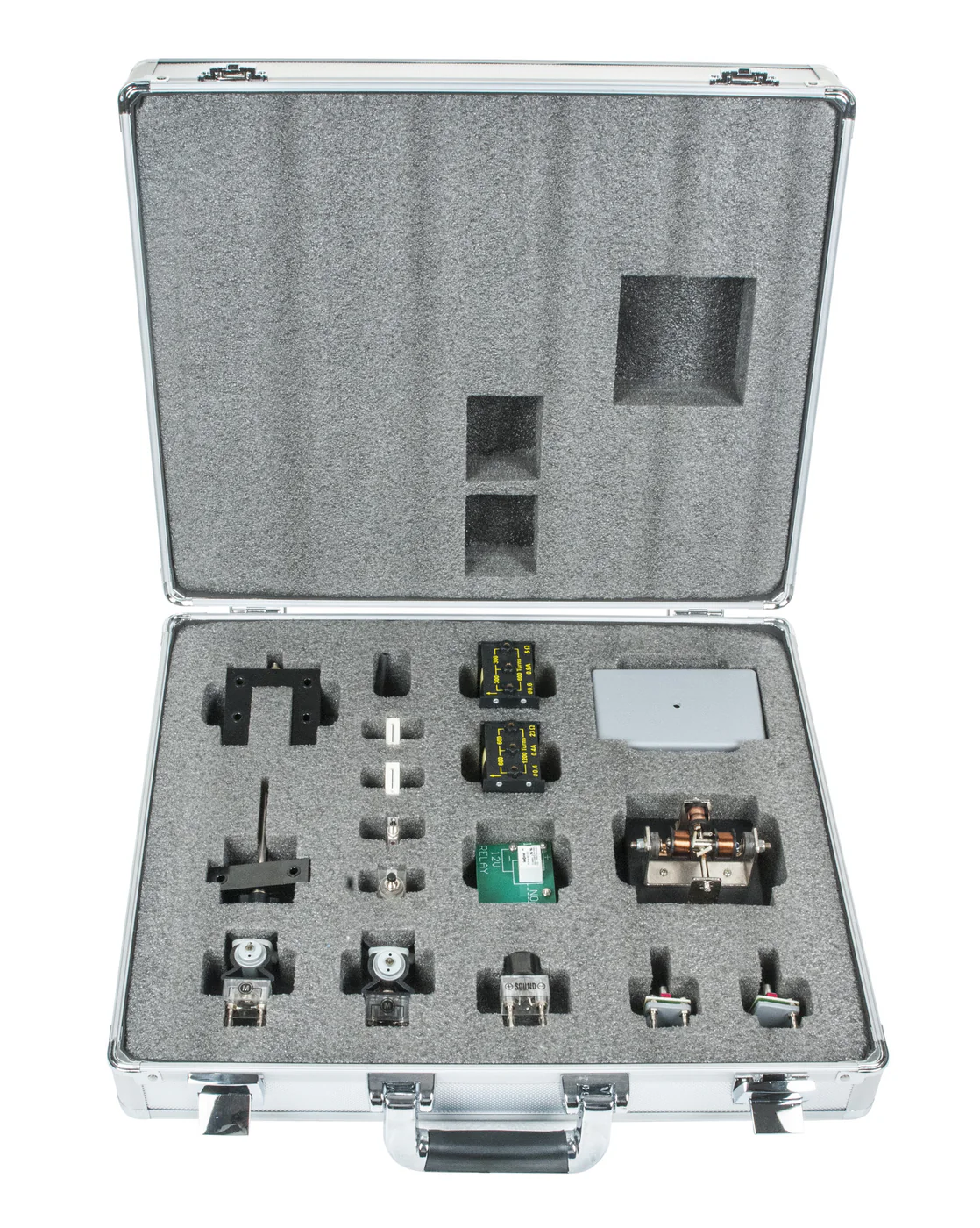 Este kit es un suplemento del Sistema de Electricidad 1 y contiene 51 componentes, incluyendo una placa de circuito y todas las bobinas de transformador, relés y motores necesarios para investigar conceptos fundamentales de la electricidad introductoria.