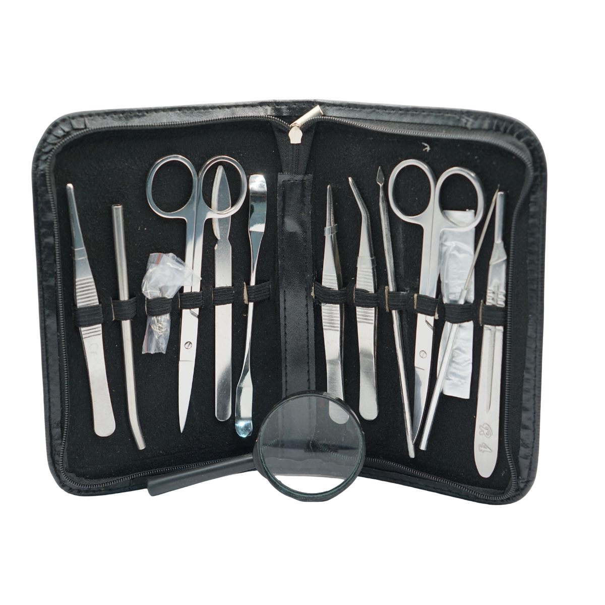 Set de disección de 14 piezas, ideal para realizar estudios de anatomía y morfología interna sobre animales y plantas (especímenes).