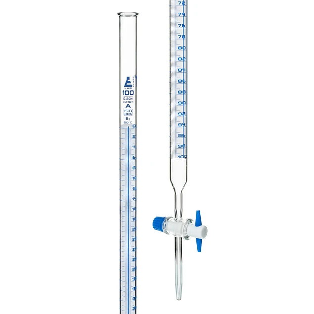 / Bureta Schellbach 100 mL con Llave de PTFE Clase A Certificado lote ISO 385 EISCO