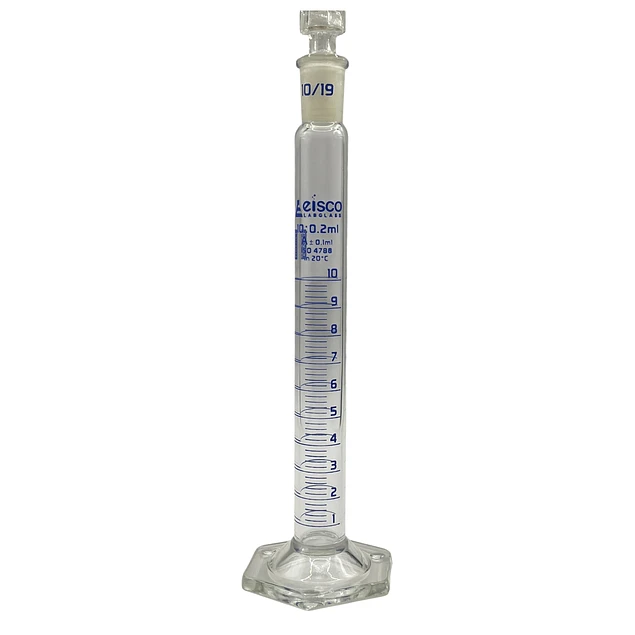 Probeta Graduada de Vidrio 10 mL – Clase A con Tapones de vidrio y PP – Cert ISO 4788 EISCO