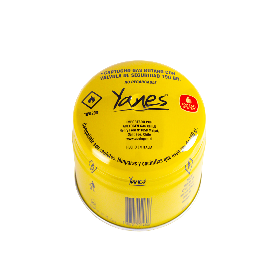 Balón de gas licuado de 190 gr, para mechero portátil con válvula de seguridad, ideal para trabajo en laboratorio escolar y universitario.